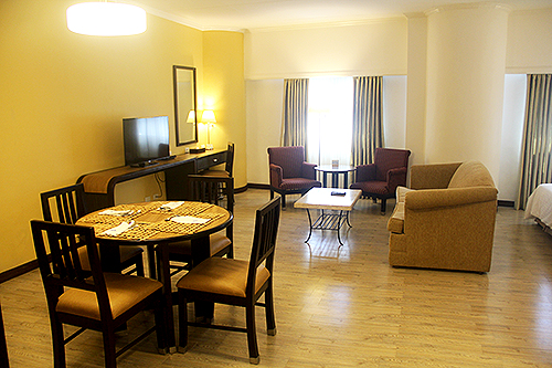 All suite rooms are equipped with 40-inch LED television with cable service, dining area, sofa bed, and kitchenette for your utmost experience